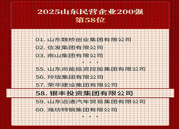 銀豐集團(tuán)再獲佳績(jī)!入圍2025山東民營企業(yè)百強(qiáng)系列三大權(quán)威榜單